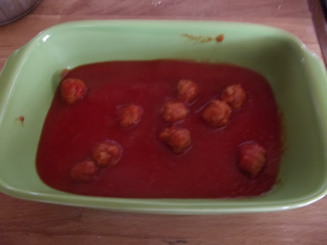 Preparate il sughetto con le polpettine, basilico e salsa di pomodoro, fatelo cuocere per circa 20 minuti, quindi preparate il timballo.