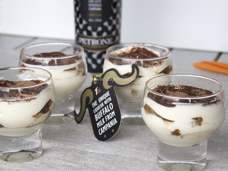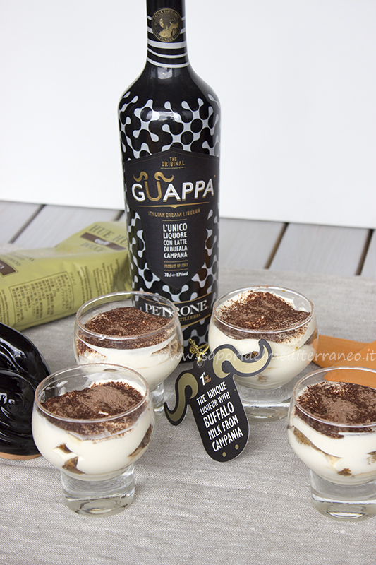 Non avevo ancora usato in nessuna ricetta il Liquore a latte di bufala Campana, non si presentava mai l’occasione e per questo quella bottiglia era rimasta chiusa nella dispensa. Con la sfida n° 61 dell’mtchallange, sul tiramisù proposta da Susy Mary del blog Coscina di Pollo, questo liquore dal gusto particolare ha trovato la sua giusta collocazione. Da un intuizione dei Fratelli Petrone nasce Guappa, liquore cremoso, dalla spiccata personalità, prodotto con latte di bufala raccolto nella zona di origine della mozzarella di bufala campana DOP. Leggendo poi tutto il post mi sono accorto che la ricetta andava abbinata un film, premetto che in tema di abbinamenti non riesco mai a centrare il tema. Guappa era una bufala appartenente ad uno dei maestri distillatori, chiamata “GUAPPA”, riecheggiando il termine spagnolo “Wapa” o “Guapa”, ossia, “bella” appunto, poichè da tutti invidiata per la grande quantità di latte in grado di produrre; latte che nei freddi mattini d’inverno veniva miscelato sapientemente dai pastori con acquavite o con distillati grezzi per riscaldarsi. Ci sono due tesi sul termine guappo, l’etimologia del sostantivo è davvero incerta, nonostante ci siano due tesi quasi plausibili: la prima secondo cui deriverebbe dallo spagnolo “guapo“, che significa bello e l’altra di derivazione dialettale, dal comasco o anglo-sassone Vap. In ogni caso, si sa con certezza che la parola inglese Wop, che designa gli italiani all’estero in senso negativo e dispregiativo, sia derivata da guappo. L’imponente figura del guappo comparve a Napoli, nella cerchia della criminalità, nel Secondo Dopoguerra. Si può definire come un mix tra un malavitoso ed un giustiziere, a cui ci si rivolgeva per difendersi nelle dispute, nelle situazioni più difficili da affrontare. Ma noi del termine guappo ci piace prendere in considerazione la tesi spagnola, ossia bello, come Totò e i suoi grandi film, uno di questo L’oro di Napoli dove interpreta il personaggio del “Pazzariello” Don Saverio Petrillo. Infatti, il guappo del Rione Sanità, Don Carmine Javarone, in seguito alla morte della moglie, si è insediato a casa sua dettando legge a tutta la sua famiglia. Il momento della rivincita arriva quando al guappo, dopo un presunto infarto, viene consigliato di astenersi da fatiche ed emozioni, per riguardo del cuore. Saverio ne approfitta e lo caccia di casa, ostentando il gesto davanti a tutto il vicinato, sicuro che Don Carmine non possa nuocere più. La diagnosi però era sbagliata e non appena ne ha consapevolezza, Don Carmine ritorna in casa Petrillo per ottenere riparazione. Ma lì trova una famiglia compatta, pronta a tutto pur di non ricominciare la vita di umiliazioni di prima. E decide di andarsene volontariamente. Quidi ho deciso di mettirci della guappa nel tiramisù classico….