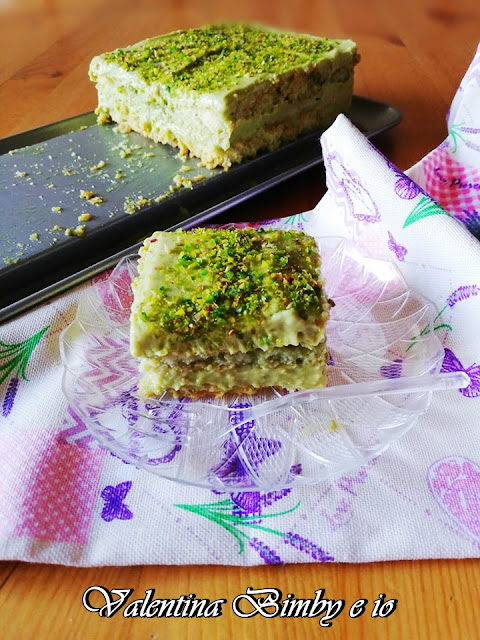 Cospargere la superficie con la granella al pistacchio, coprire lo stampo con un foglio di alluminio e conservare in frigo almeno 4 ore prima di servire.