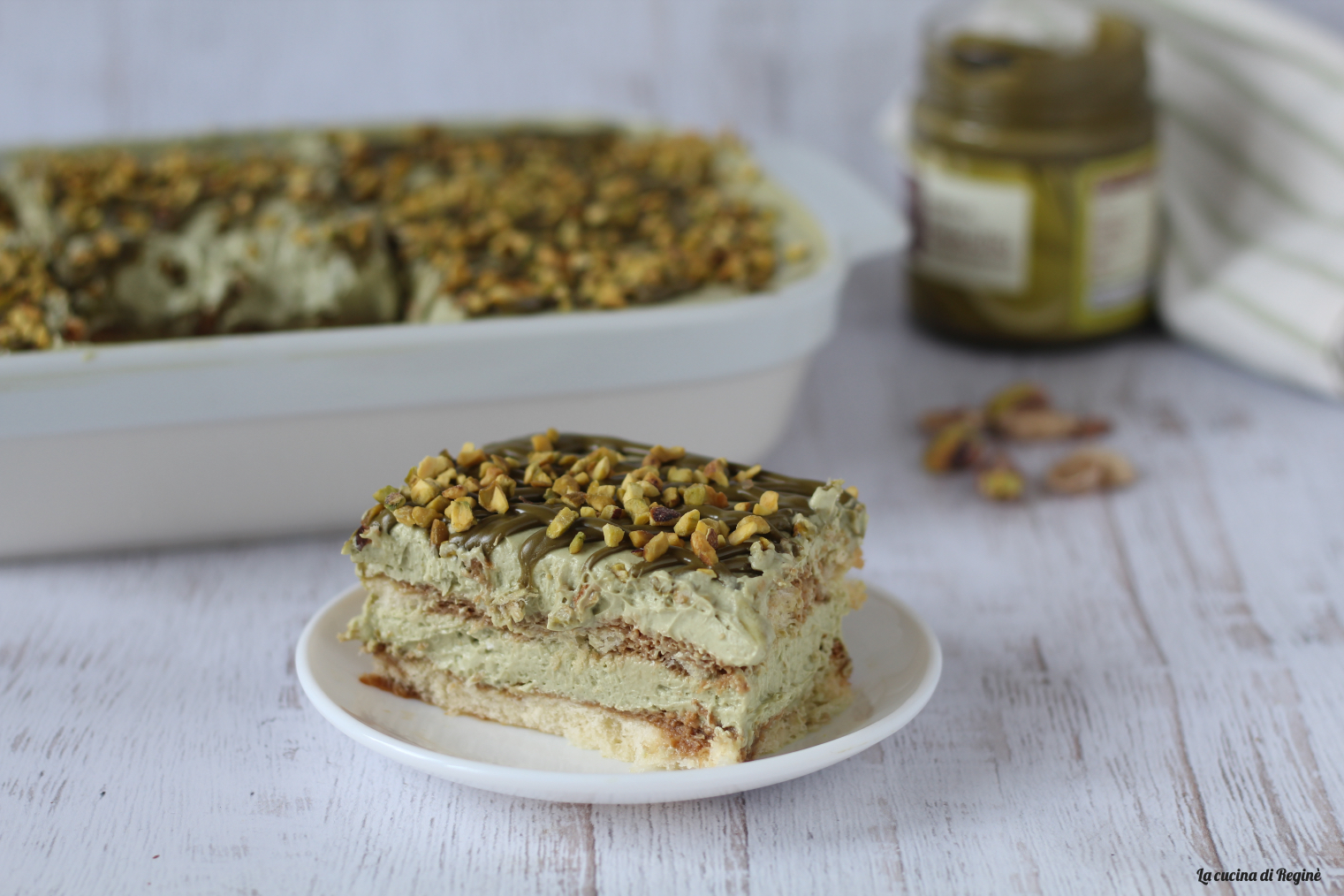 Composizione del tiramisù al pistacchio