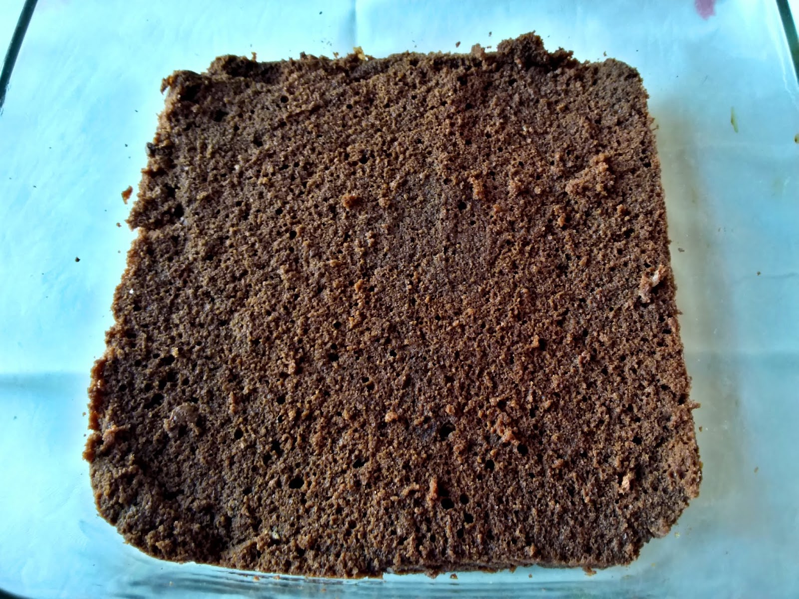 - Poi tagliare due fette dal Pan di Spagna alte circa 1,5 cm, dandogli la forma del contenitore che le accoglierà. Inserire nello stesso la prima fetta ed inzupparla con la bagna, aiutandosi con un pennello.