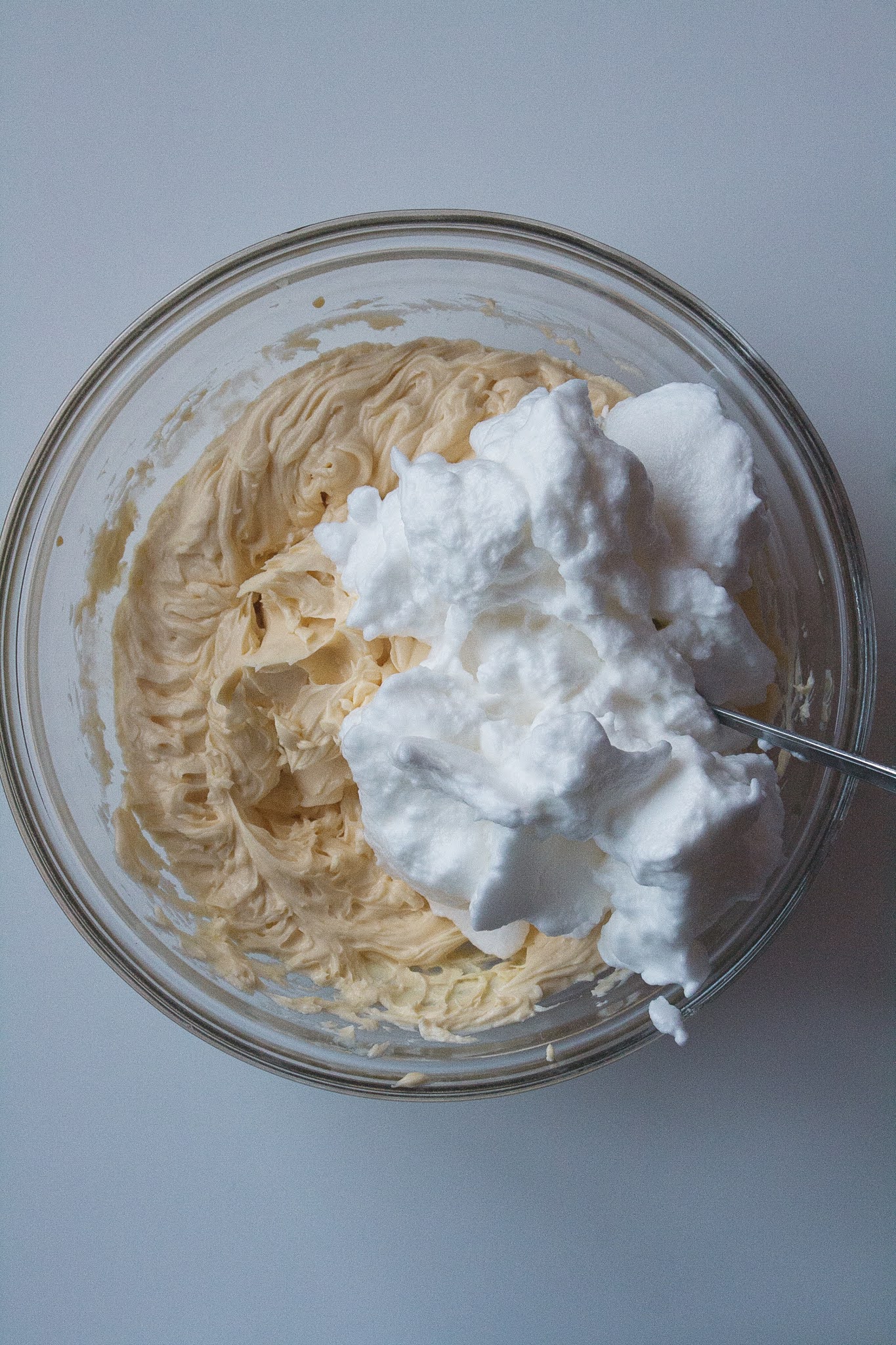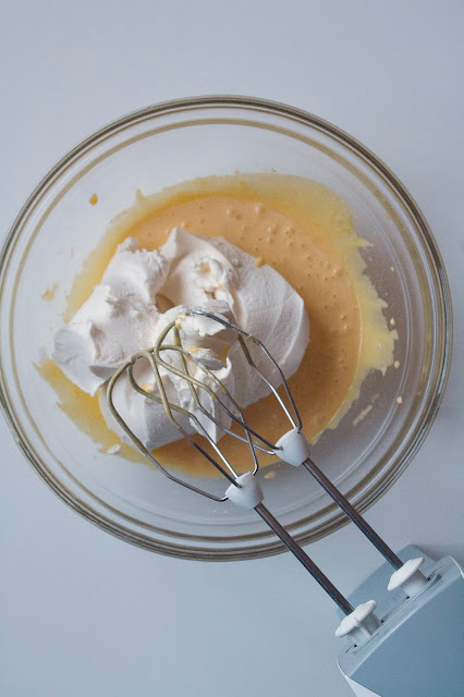 Di seguito combinate i 3 albumi montati a neve ferma adoperando una spatola e mescolando dal basso verso l’alto per non smontare il composto.