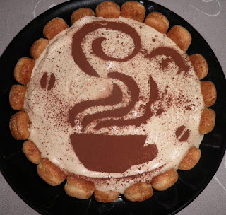 Ingredienti: 5 tuorli, 150 g di zucchero, 75 g di acqua, 500 g di mascarpone, 250 g di panna, cacao, caffè, savoiardi.