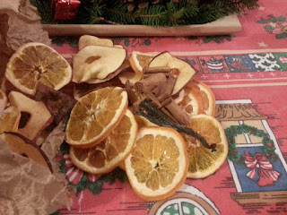 1 mela rossa, 2 arance biologiche, 1 limone biologico, 2 bastoncini di cannella, una bacca di vaniglia.