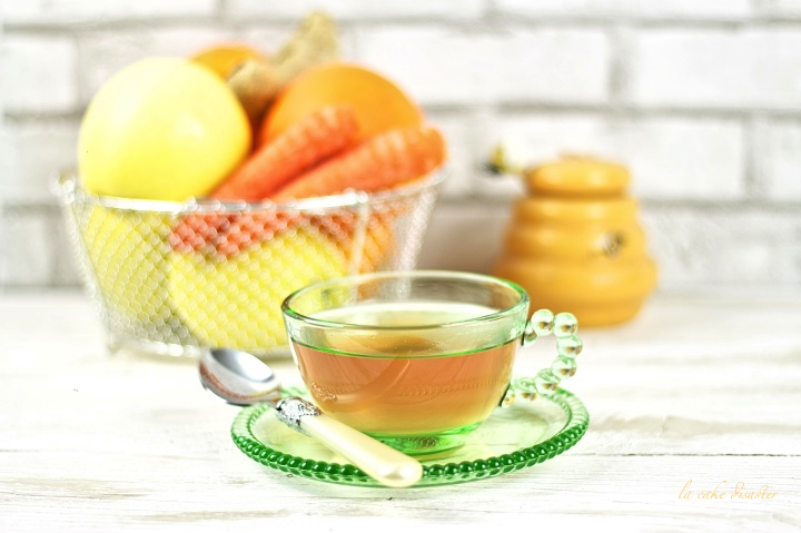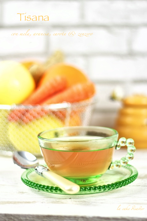 Che giornata oggi…metereologicamente parlando!!!! Mi sembra di essere a Londra…apri l’ombrello, esce il sole, chiudi l’ombrello, piove, riapri l’ombrello…sono stressata!!!! Allora tornata a casa ho pensato…perchè non preparare una bella tisana…che oltre a rilassarmi mi fa anche bene…ok ma cosa ho in casa…di andare al supermercato non mi andava proprio…allora frutta, verdura, spezie…ho tutto!!!! Allora ho preparato questa tisana semplice e ricca di vitamine con l’aiuto di uno spremiagrumi, una centrifuga ed un pentolino alla vecchia maniera (ora uso il bollitore elettrico che salvezza!!!!)…ci vogliono solo mele, arance, carote e zenzero…
