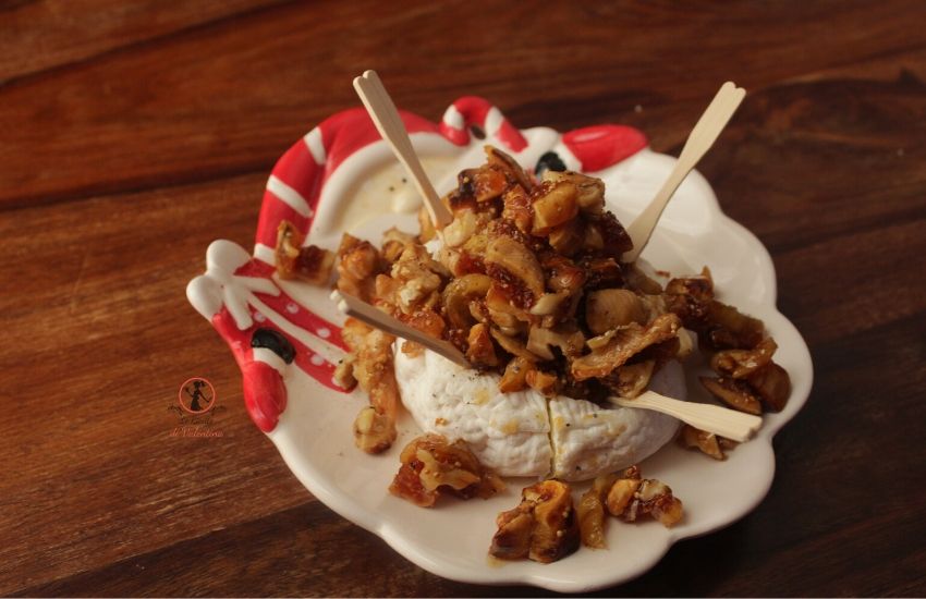 L’ispirazione mi è venuta su pinterest guardando forme di brie ricoperte di mirtilli rossi, noci e sciroppo d’acero colante. Per fortuna qui da me, a Venasca, non abbiamo bisogno del Brie perché abbiamo la toma del Melle che se la gioca molto bene con i cugini d’oltralpe.