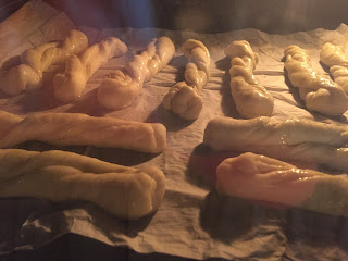 A lievitazione raggiunta, spennellare i torciglioni con un po’ di latte, infornarli e cuocerli per 15-20 minuti, controllando che non si dorino troppo in superficie.
