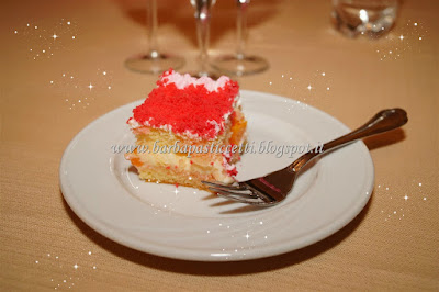 Con un composto di Alchermes, Limoncello e lo sciroppo della macedonia in dosi a scelta, irrorare la base a forma di zero.