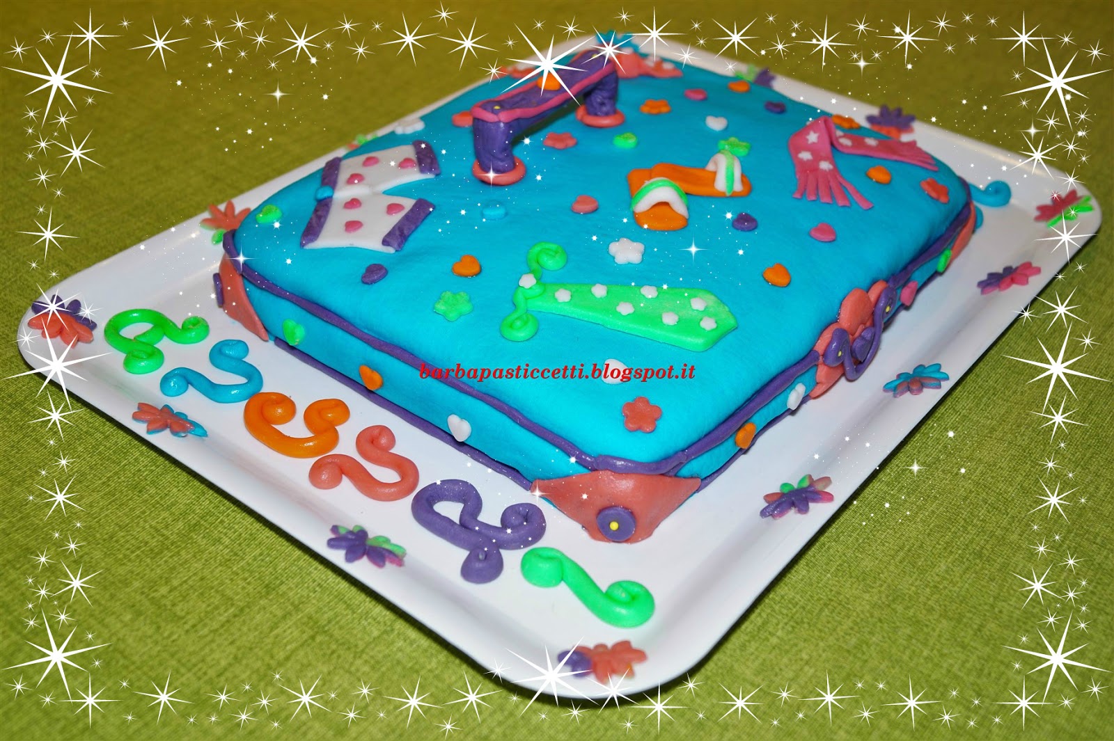Dopo la torta a forma di Camicia visibile qui e la torta Pannosa visibile qui, quest’anno ho optato di nuovo per la pasta di zucchero ed ecco cosa ho creato!