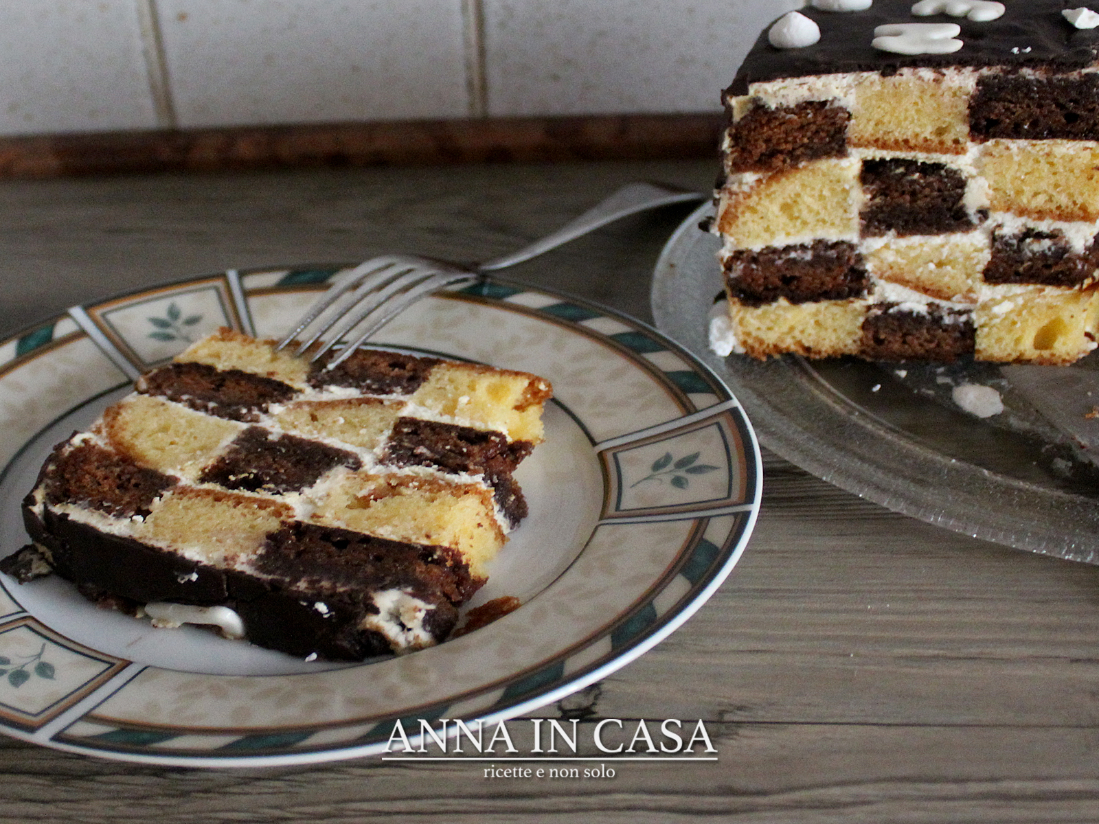 La torta è una classica allo yogurt, senza burro, con crema di formaggio e glassa al cacao. Per renderla più carina ho rifatto la scacchiera.