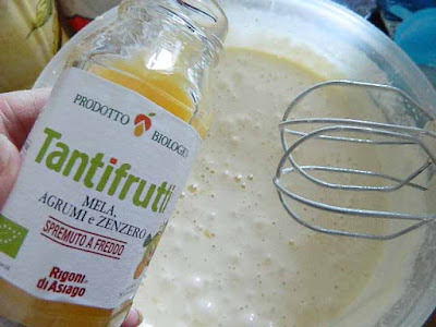 amalgamare bene gli ingredienti ed infine aggiungere il succo Tantifrutti mela, agrumi e zenzero.