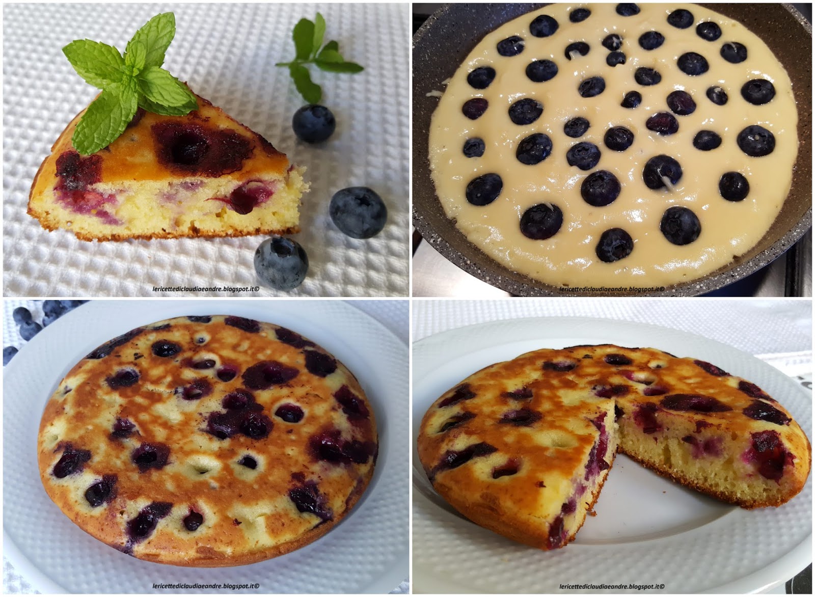 - Oliare un padellino di circa 20 cm di diametro e mettere a riscaldare su fiamma bassa, versare l’impasto nella padella, livellare e distribuire sopra i mirtilli.