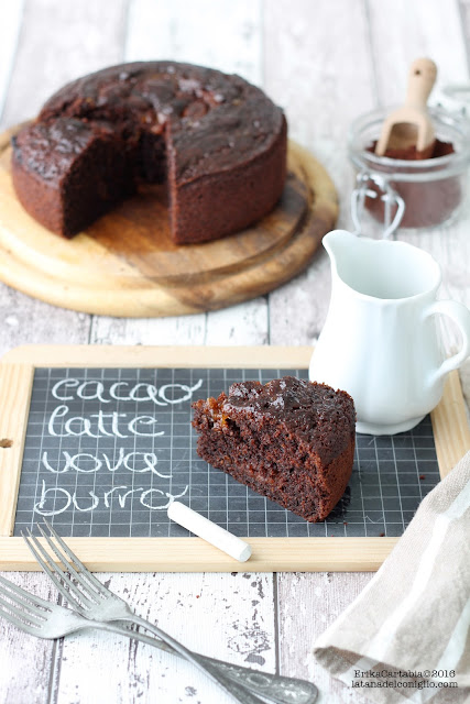 In questo periodo frenetico, il blog ha un po’ risentito e non sono riuscita a pubblicare molte ricette. Alcune sono ancora lì, sulla moleskine, altre sono in programma per i prossimi giorni. O almeno così era fino a quando mio figlio non ha pensato di beccarsi la varicella, per completare l’opera di un meraviglioso 2016! Qui è tutto un susseguirsi di piccoli eventi sfortunati, perciò urge una torta al cacao, soffice e delicata, perfetta per una golosa merenda e per tirarsi un po’ su di morale.