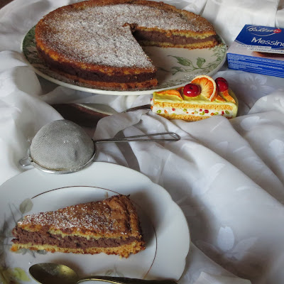 Torta al cioccolato con ricotta e biscotti con le ciliegie