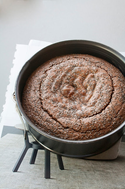 Smooth the top, cover with an handful of chia seeds and bake for about 30 minutes or until a skewer inserted in the centre comes out clean.