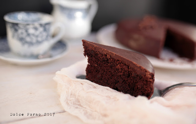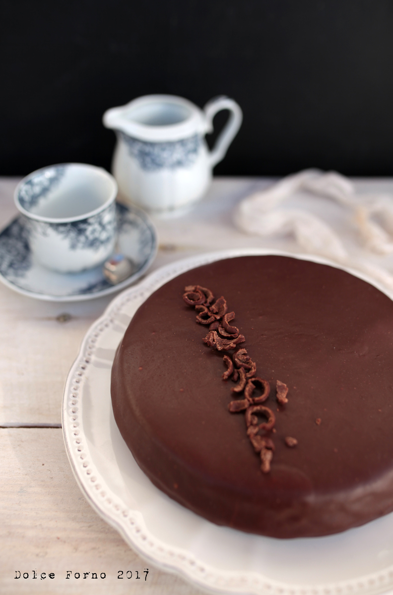 Sbatti Formais e zucchero fino a che lo zucchero è sciolto, unisci l’olio ed amalgama. Setaccia le farine ed il bicarbonato, unisci al composto alternando con la bevanda all’avena. Quando l’impasto sarà omogeneo, aggiungi l’aceto. Versa in uno stampo oliato e infarinato. Cuoci a 160°, modalità ventilato per 35/40. Sforna e lascia raffreddare su una gratella per dolci. Prepara uno sciroppo con lo zucchero a velo e l’acqua, quando bolle togli dal fornello e versa il cioccolato ridotto a piccoli pezzi. Mescola per sciogliere il cioccolato e raffreddare il composto, l’ideale sarebbe usarlo intorno ai 40°, ma ti puoi regolare toccandolo, quando non ustiona più (scherzo ovviamente, ma fai attenzione, potresti scottarti) si può versare sul dolce. Metti un vassoio sotto la gratella. Versa sul centro della torta, la glassa scivolerà verso il basso, quindi lungo i lati, aiutata dalla forza di gravità. E magari anche da te che inclinerai leggermente il dolce per favorire la glassatura omogenea. Recupera la glassa che colerà,mettila in una sac a poche e forma dei piccoli cerchi, che spezzerai a metà una volta solidificati. La glassa asciuga in un’ora circa, poi applica le decorazioni che, a quel punto, si possono maneggiare. Si conserva a temperatura ambiente in un porta torte chiuso.