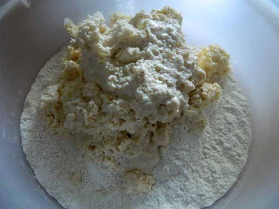In una ciotola mettere farina, zucchero e lievito, mescolare gli ingredienti