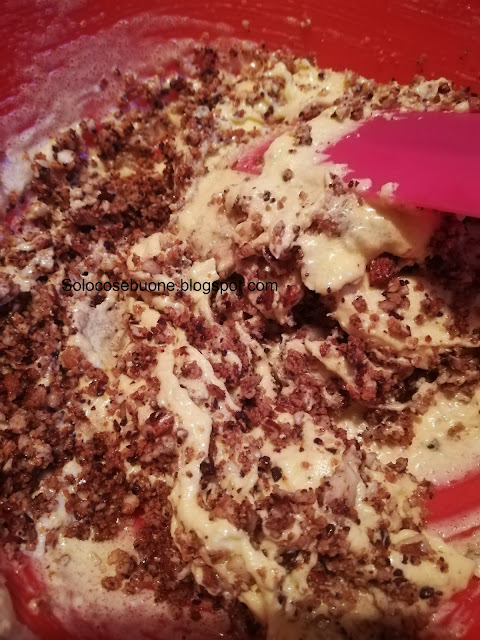 Aggiungere il composto di amaretti, mandorle e cioccolato fondente.