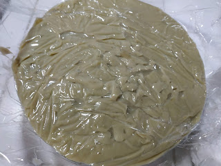 Versate il cioccolato rimanente su un disco di biscuit e fate rapprendere dopo aver completato con una bella manciata di granella di pistacchio di Bronte.