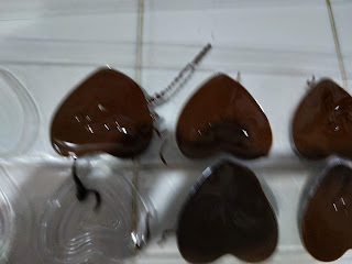 Fate sciogliere a bagnomaria il cioccolato e ricavate le decorazioni che avete in mente (io ho realizzato dei cuoricini e il numero 30). Fate raffreddare i decori e togliete dagli stampini.