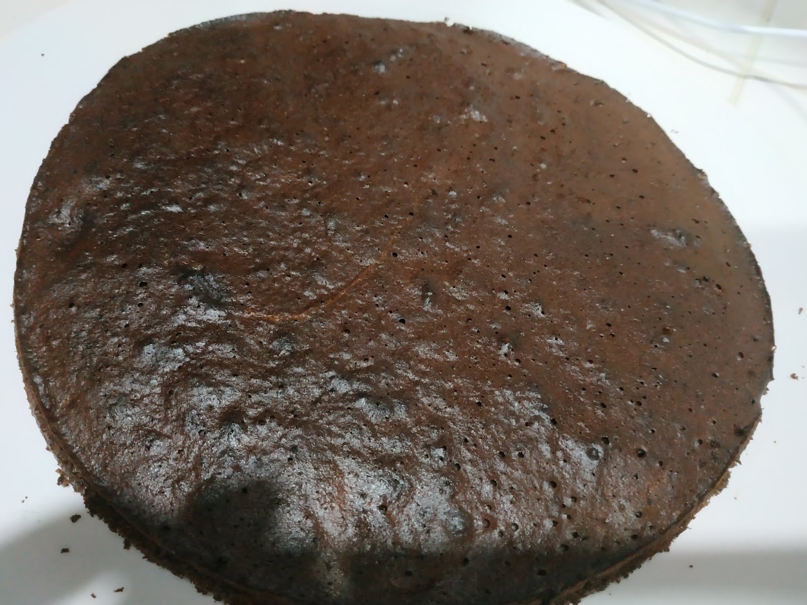 Montare i tuorli con lo zucchero, aggiungere la farina, il burro, il cacao e infine gli albumi montatri a neve. Infornare in una placca da forno e poi ritagliare i dischi che vi servono, oppure realizzatelo direttamente negli stampi rotondi; ve ne occorreranno 2.