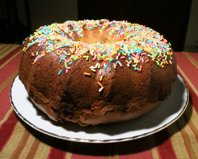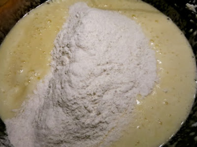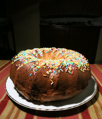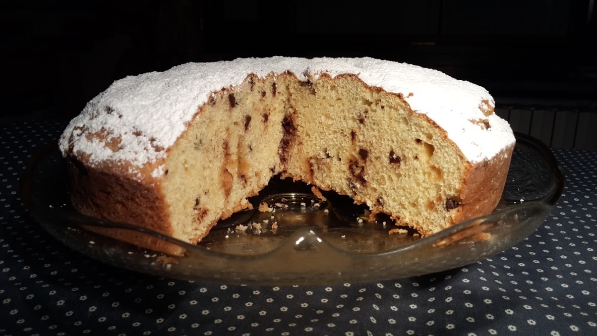A questo punto si può decidere se usare uno stampo con foro centrale di silicone come appare nelle foto di inizio post oppure versare la massa in uno stampo tondo, ben imburrato ed infarinato…