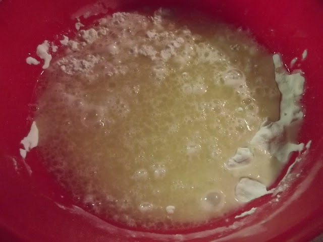 Sbattete dapprima l’acqua con l’olio e lo zucchero, quindi unite gli aromi , la farina e infine il lievito.