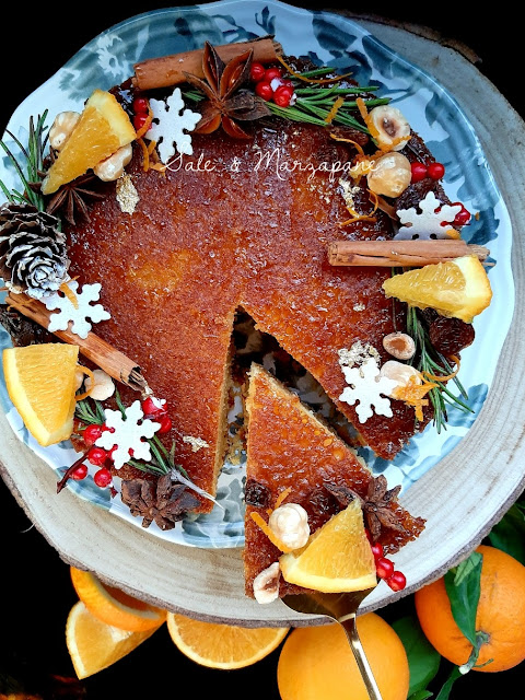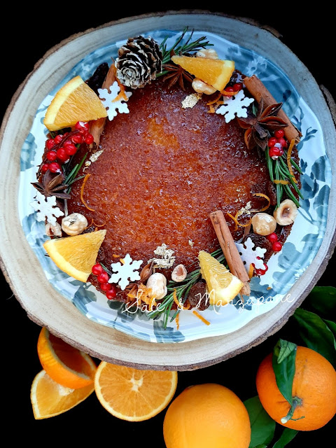 Capovolgete la torta su un piatto da portata ed irrorate la superficie con lo sciroppo. Decorate a piacere, la mia è ovviamente in versione natalizia!