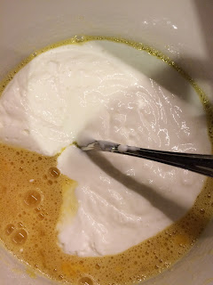 Ho sbattuto le uova con sale e zucchero, quindi aggiunto lo yogurt