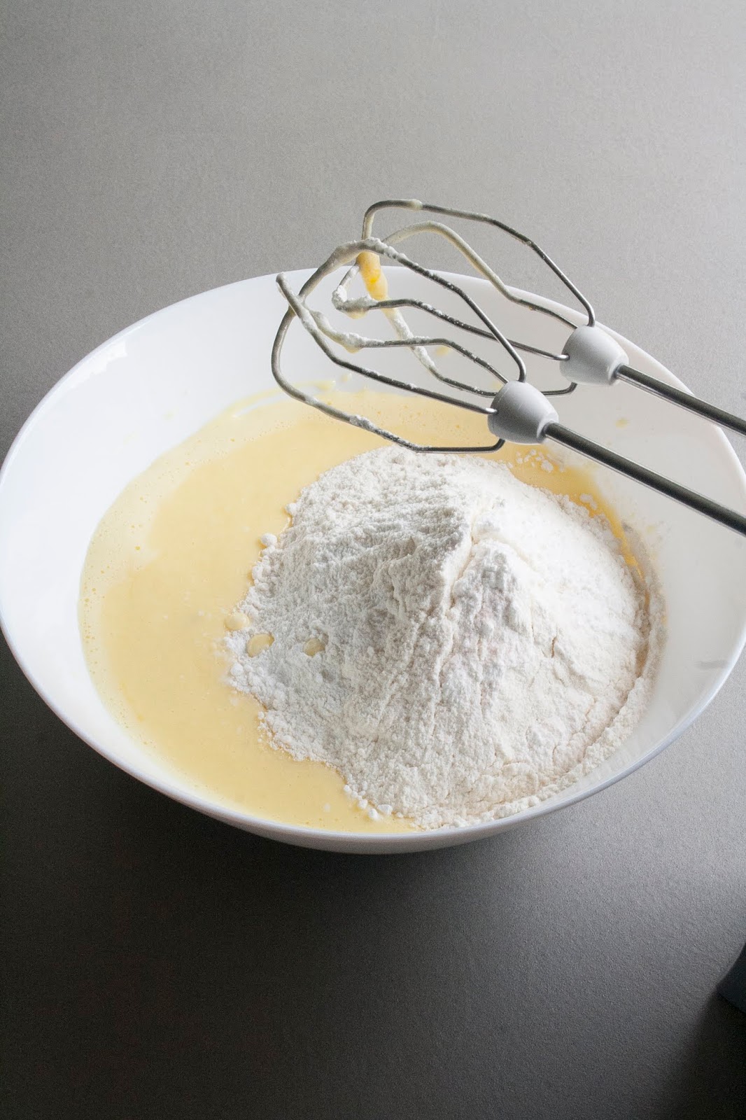 A questo punto aggiungete la farina, il lievito e un pizzico di sale fino e lavorate il tutto.