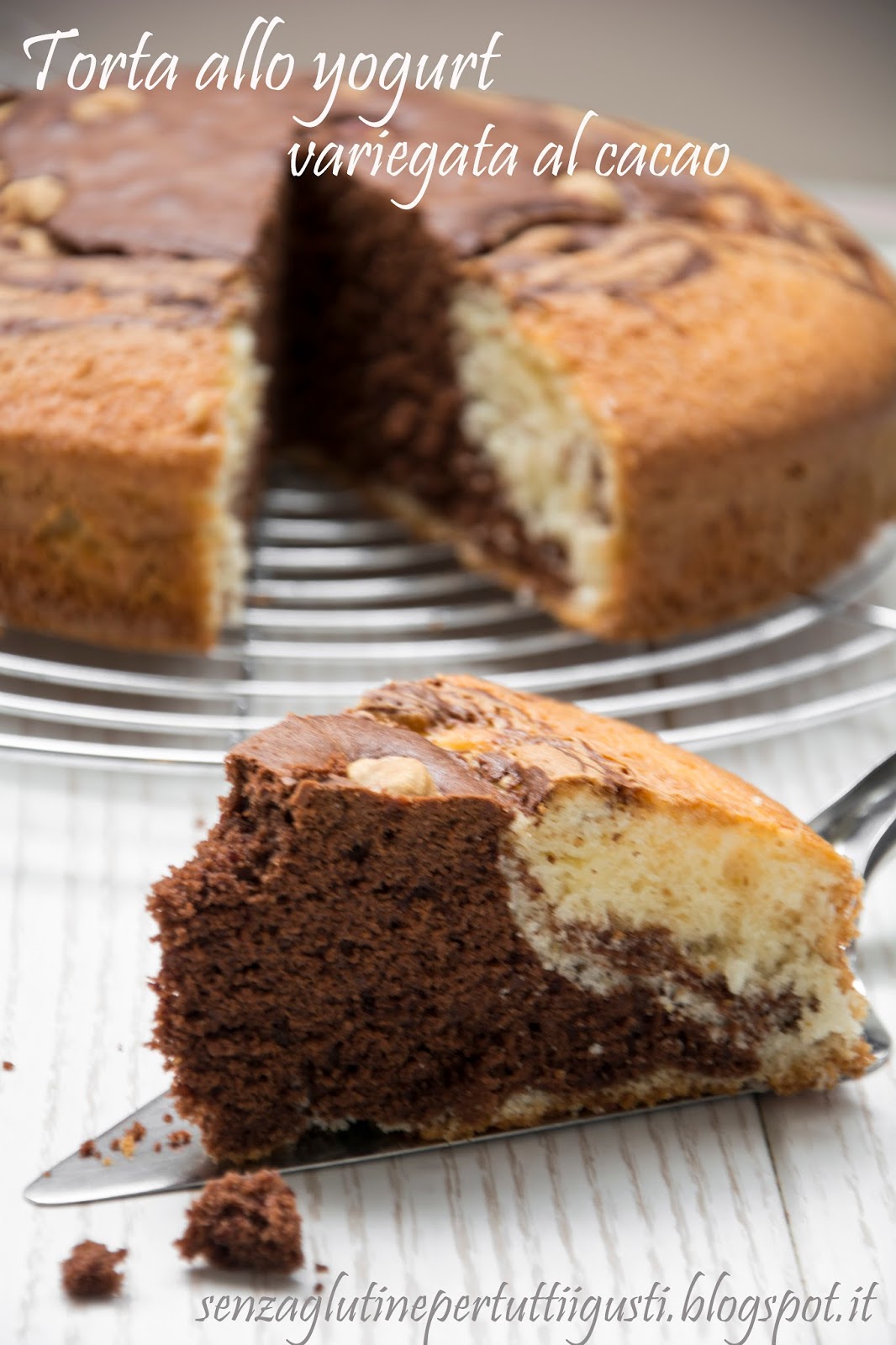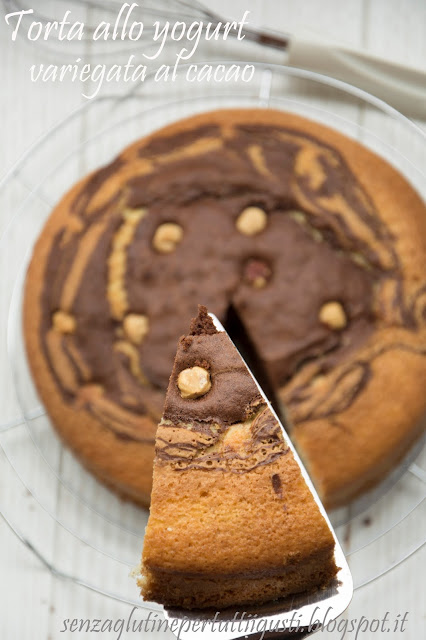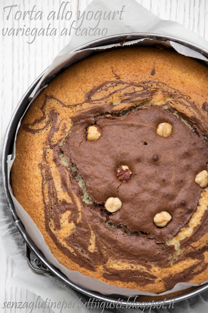 Questa Torta allo yogurt varigata al cacao e con nocciole intere è davvero