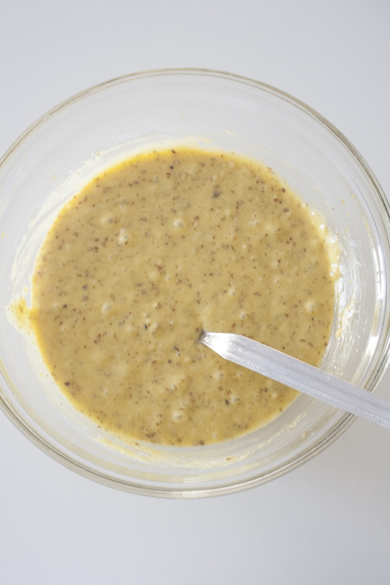 Mescolate per bene per ottenere un impasto omogeneo, quindi versatelo nello stampo foderato di carta forno, livellate e mettete nel forno già caldo a 175°C.