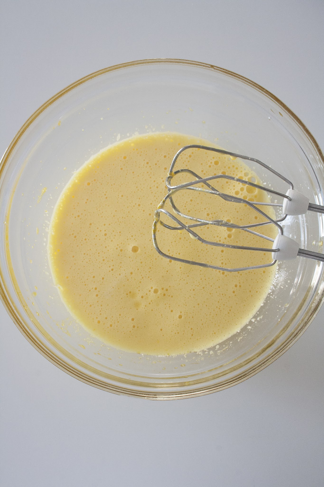 Lavorate con le fruste elettriche le 2 uova intere con lo zucchero semolato, la scorza grattugiata del limone e un pizzico di sale fino.