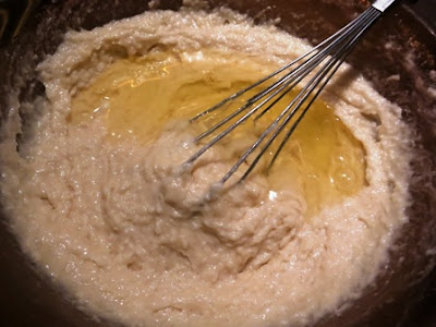 Sempre mescolando unire l’olio di semi e la fialetta all’aroma di mandorle…