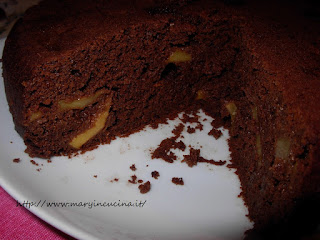 280 gr farina integrale di farro appena macinata, 1 bustina di cremortartaro, 100 gr zucchero integrale di canna, 100 ml olio extravergine d’oliva, 400 ml acqua, 60 gr cacao amaro, un pizzico di cannella, 2 mele.
