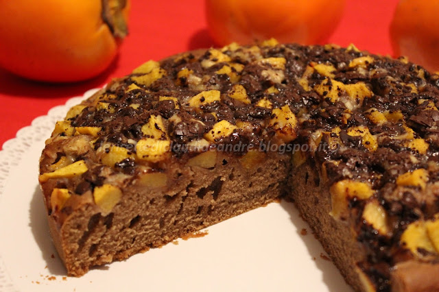Torta cachi e cioccolato al olio e sciroppo d’acero