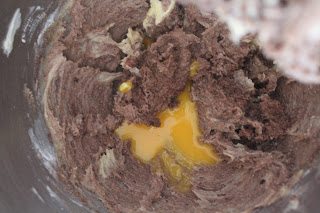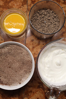 Preparare tutti gli ingredienti: mescolare e setacciare la farina di mandorle, il cacao in polvere, la farina 00 e il lievito; pesare i tuorli, ridurre in granella in cioccolato fondente e montare gli albumi con lo zucchero semolato.