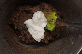 Imburrare e cospargere con polvere di cacao una tortiera da 26 cm di diametro.