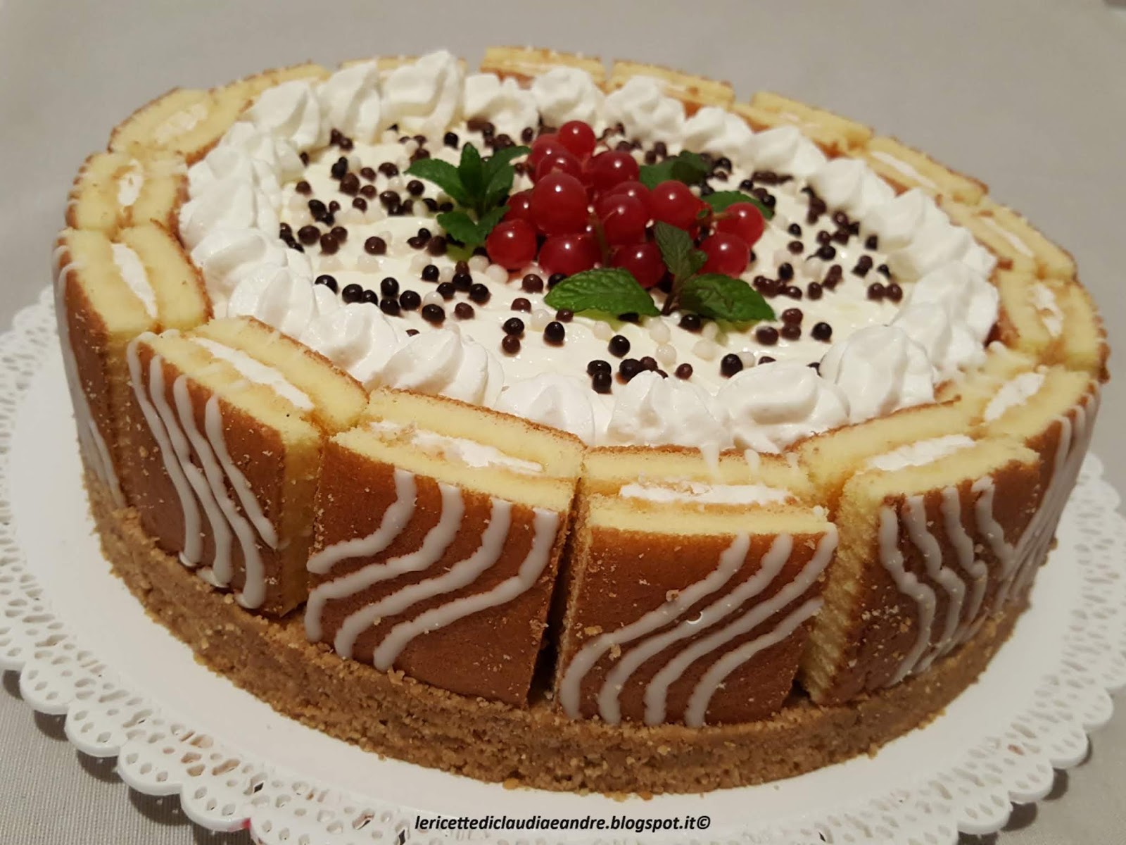 - Rovesciare dentro metà della crema, distribuire sopra un pò di ribes e decorazioni al cioccolato.