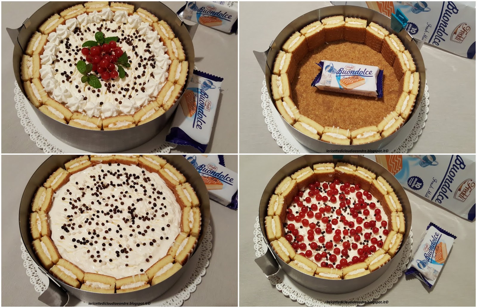 - Togliere la base di biscotti dal frigo. Scartare le merendine, tagliarle in due, sistemarle tutto attorno al bordo dell’anello come da foto.