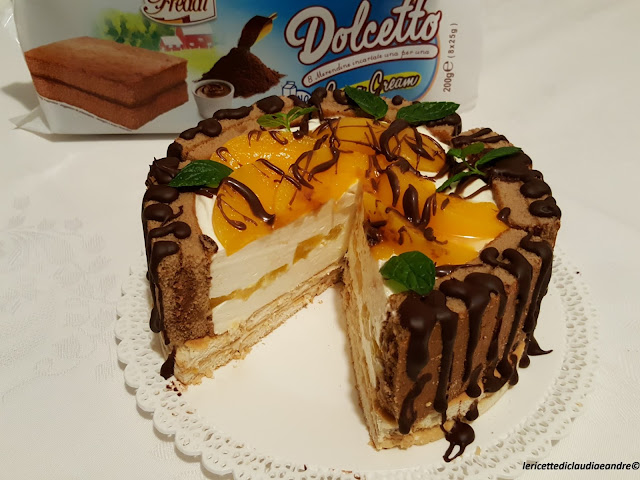 Torta Cheesecake Dolcetto Cacao Cream No Lactose Freddi con pesche e cioccolato
