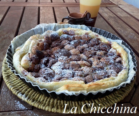 Preparazione: rivestire uno stampo con la carta forno e stendervi la pasta sfoglia.