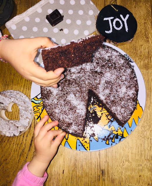 Cosa se non due manine morbidose che afferrano una fettina di torta ciocco-coccolatosa, esprimono meglio il concetto di “Joy”?