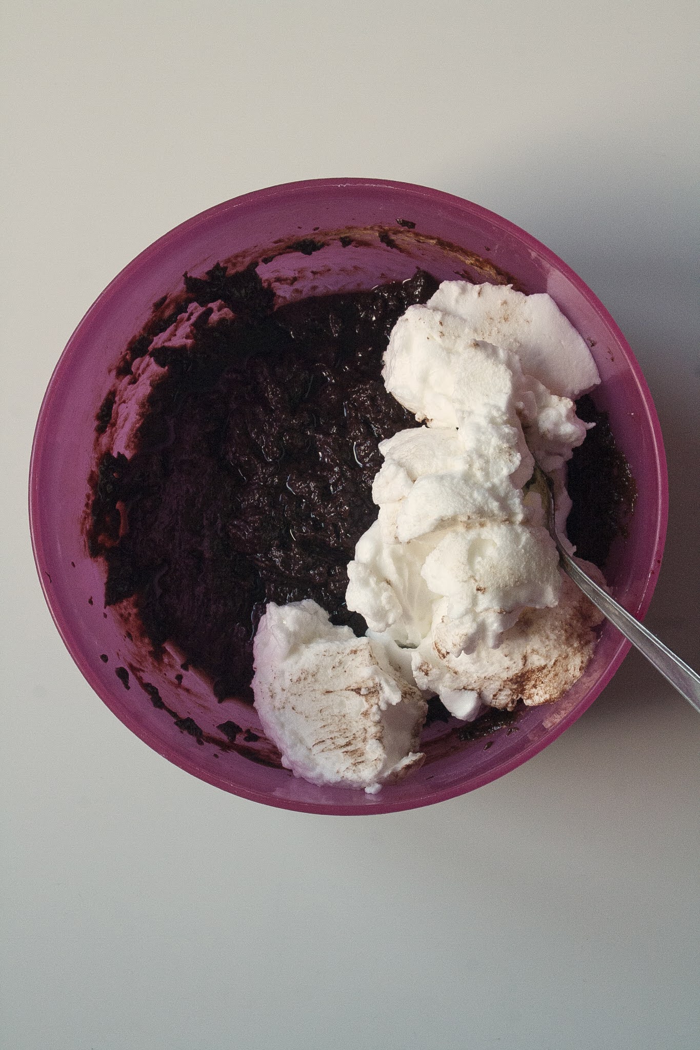 Infine combinate gli albumi montati a neve, mescolando delicatamente e con movimenti circolari dall’alto verso il basso.