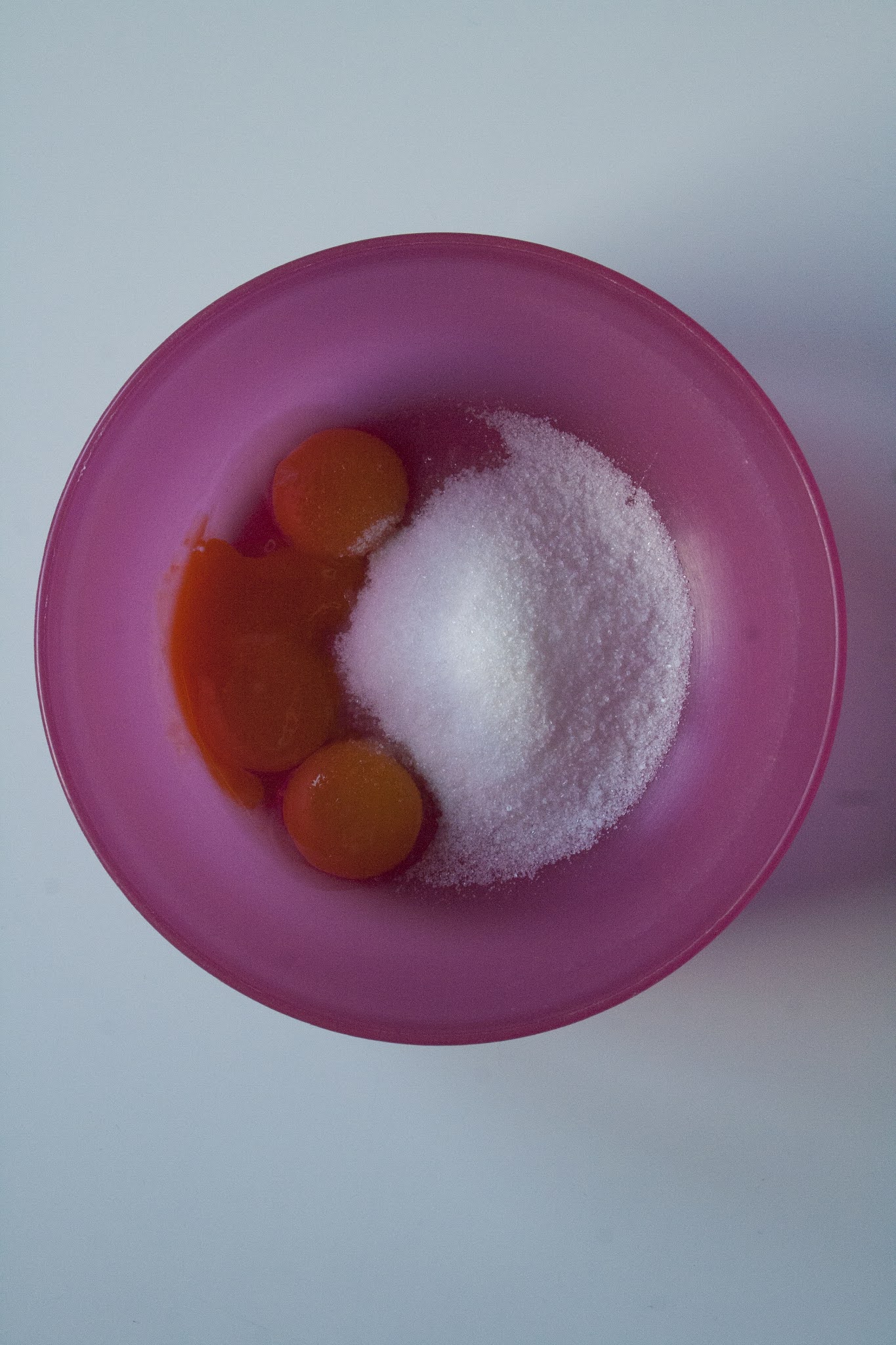 Nel frattempo lavorate con le fruste elettriche i 3 tuorli con lo zucchero bianco fino ad ottenere un composto spumoso e chiaro.