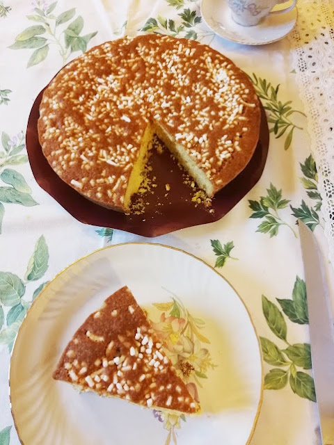 L’unica decorazione è rappresentata dalla granella di zucchero ( me ne hanno regalato un sacchetto da mezzo chilo e lo devo far fuori un po’ per volta).