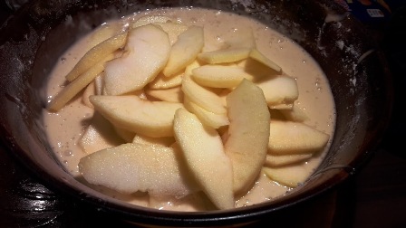 Trasferire il tutto in uno stampo ben imburrato ed infarinato decorando la superficie con le restanti mele..