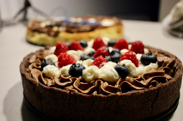Aggiungiamo i mirtilli e i lamponi e altre decorazioni a vostro piacere. Io ho creato per l’occasione delle decorazioni in pasta frolla decorati con glassa di zucchero colorata.