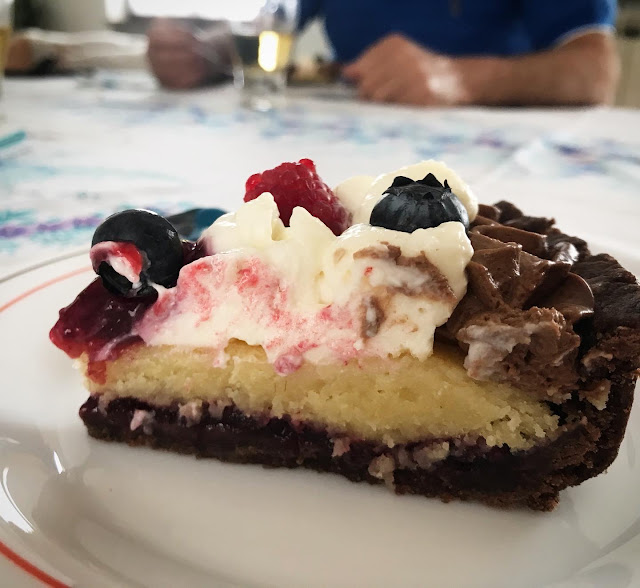 Rirpendiamo la frolla e ricopriamo una tortiera del diametro di cm, ricopriamo il fondo con un abbondante strato di marmellata ai frutti di bosco.