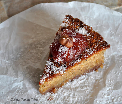 Rivestiamo una tortiera con della carta forno, versiamo il composto, ed ora aggiungiamo la marmellata distribuita su tutta la superficie.